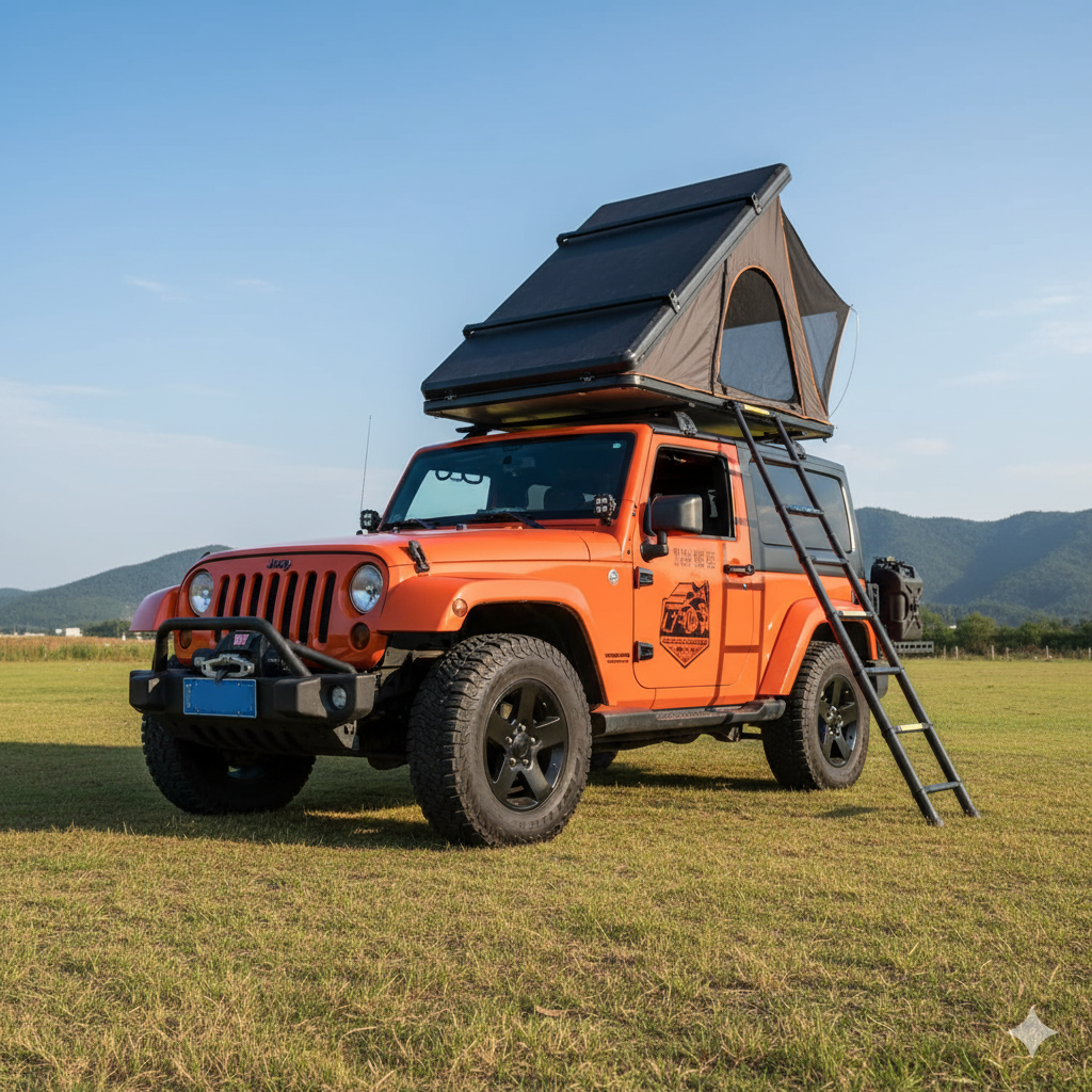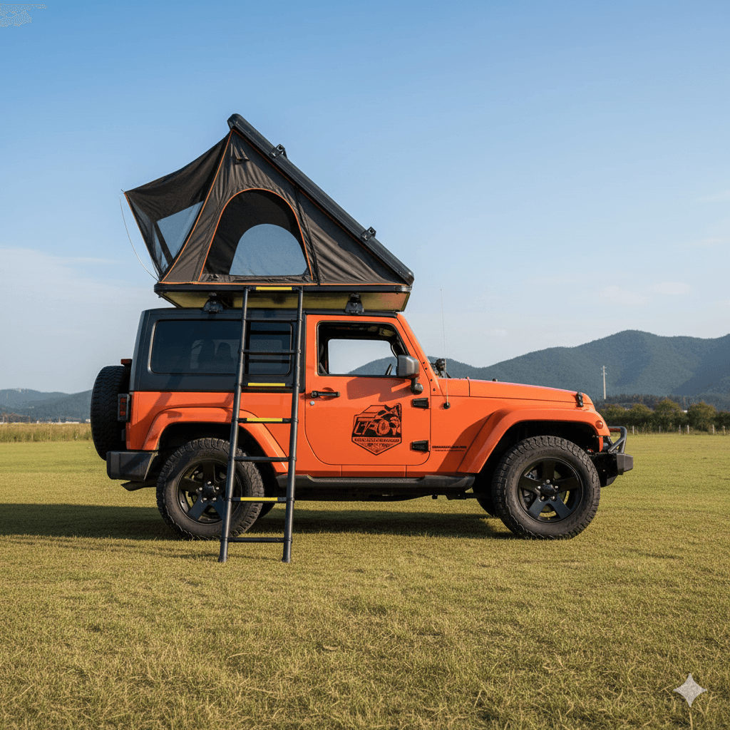 Triangle Clamshell Hard Shell Rooftop Tent for 4×4 & SUV Camping (2-4 Person)